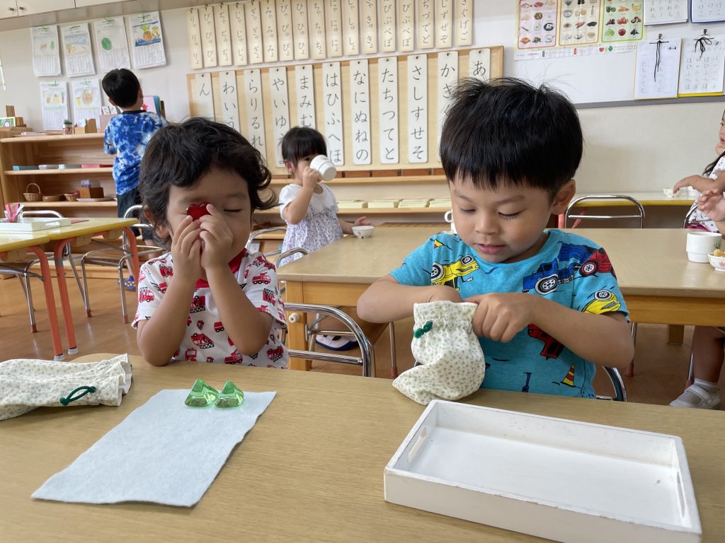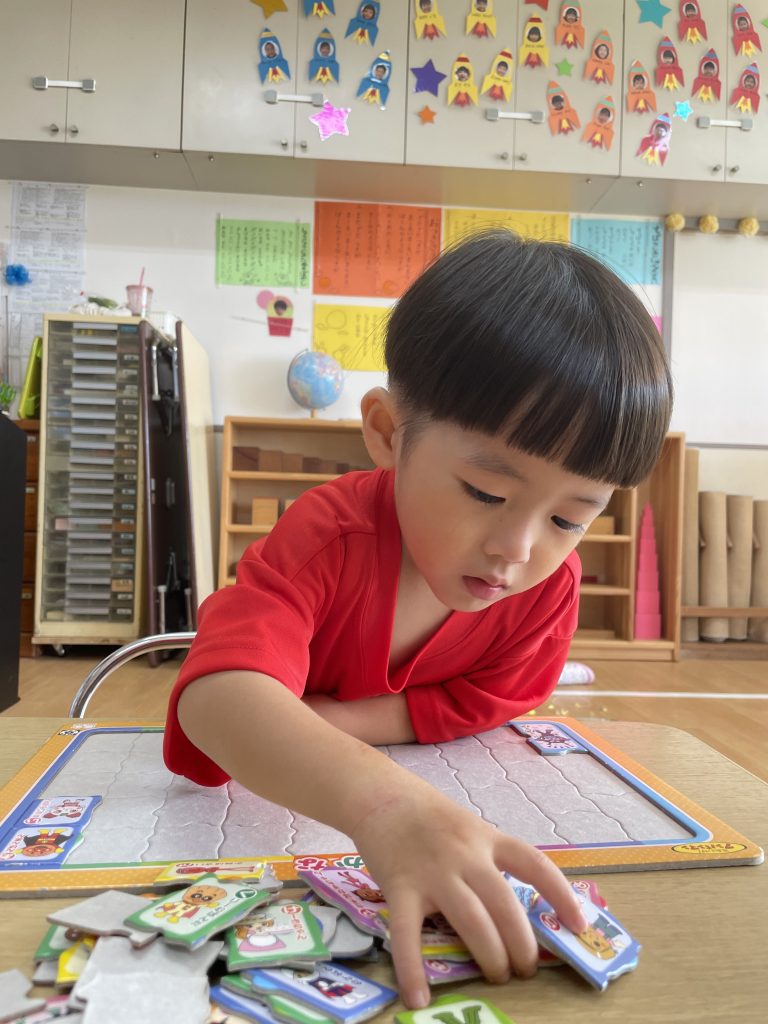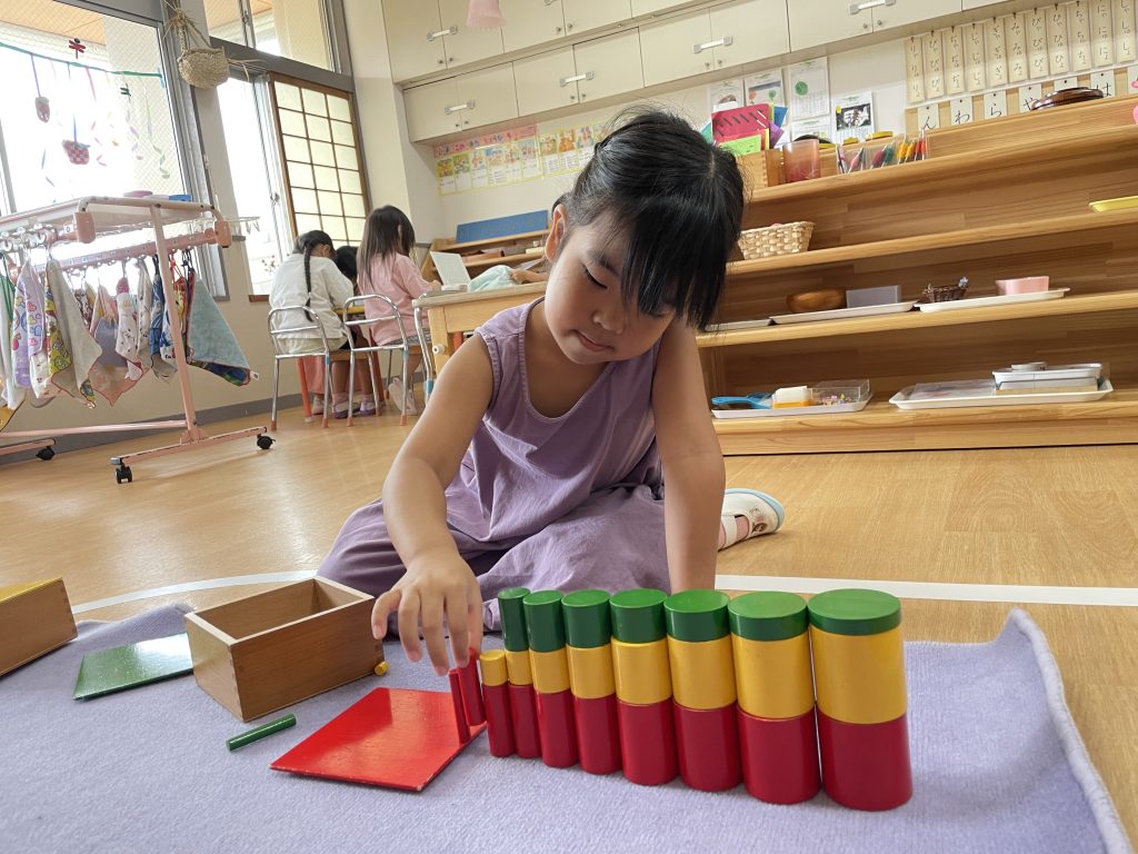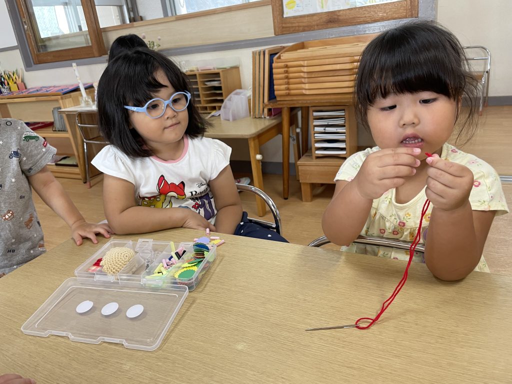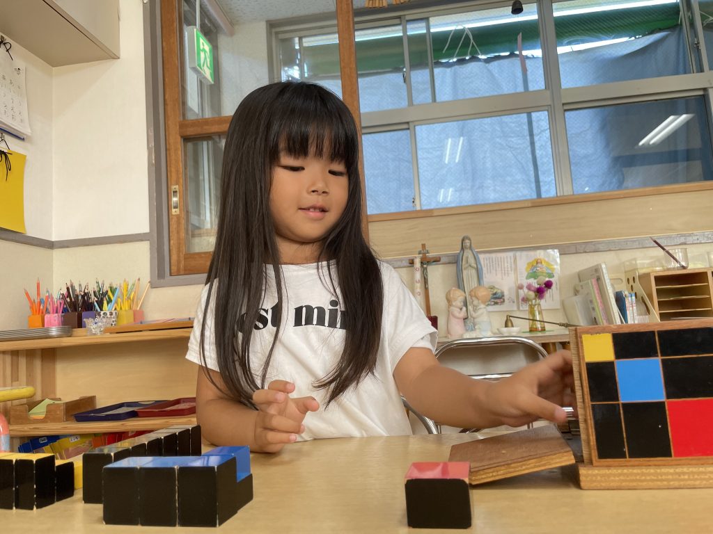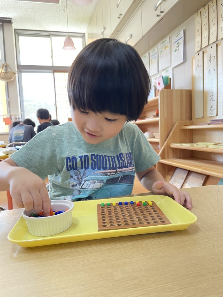 朝のモンテッソーリ活動の時間に好きなお仕事を選んで行っています。
