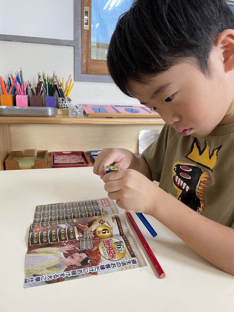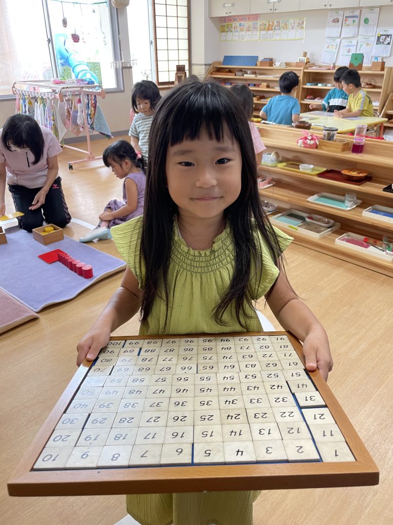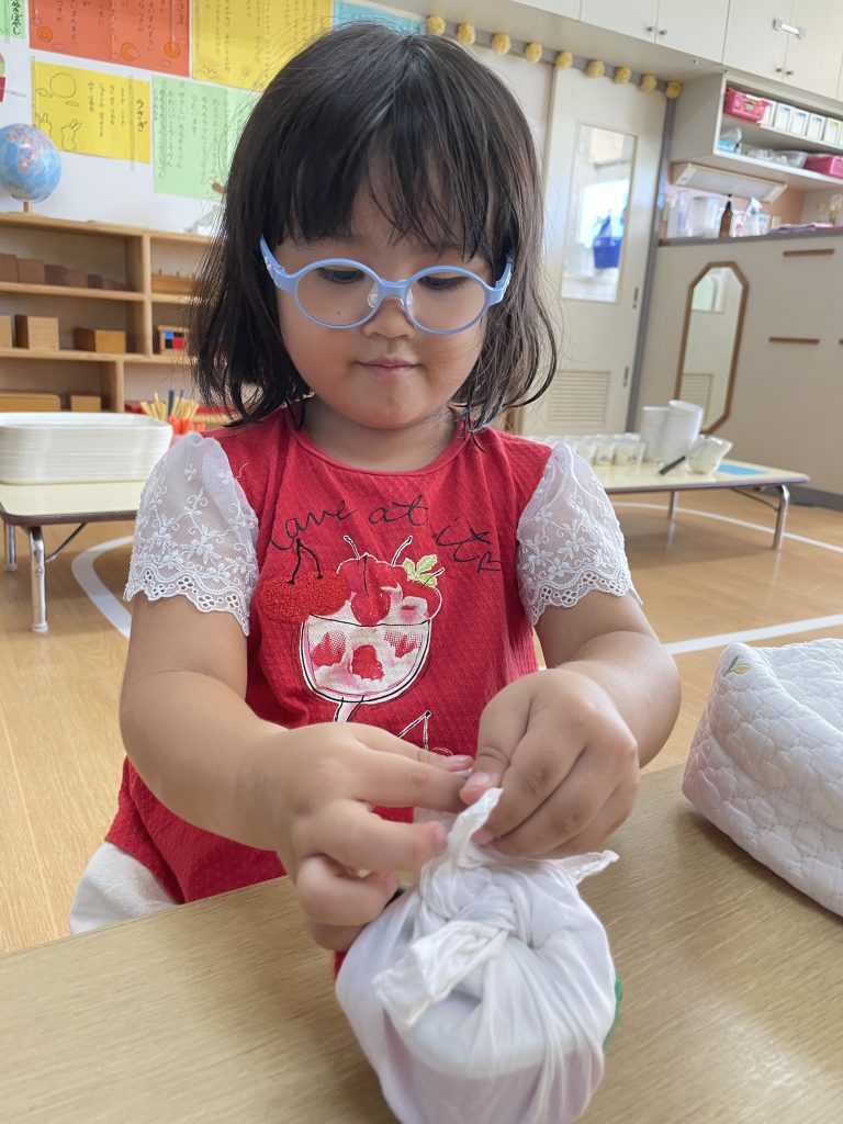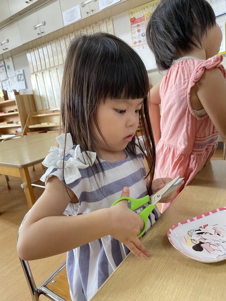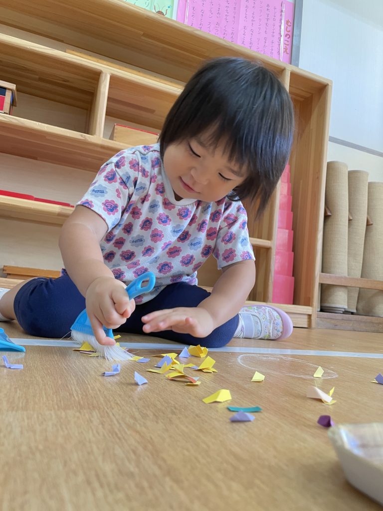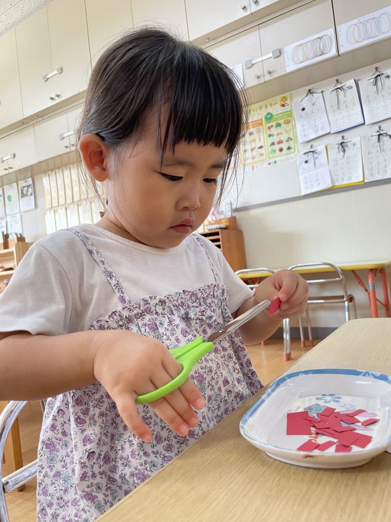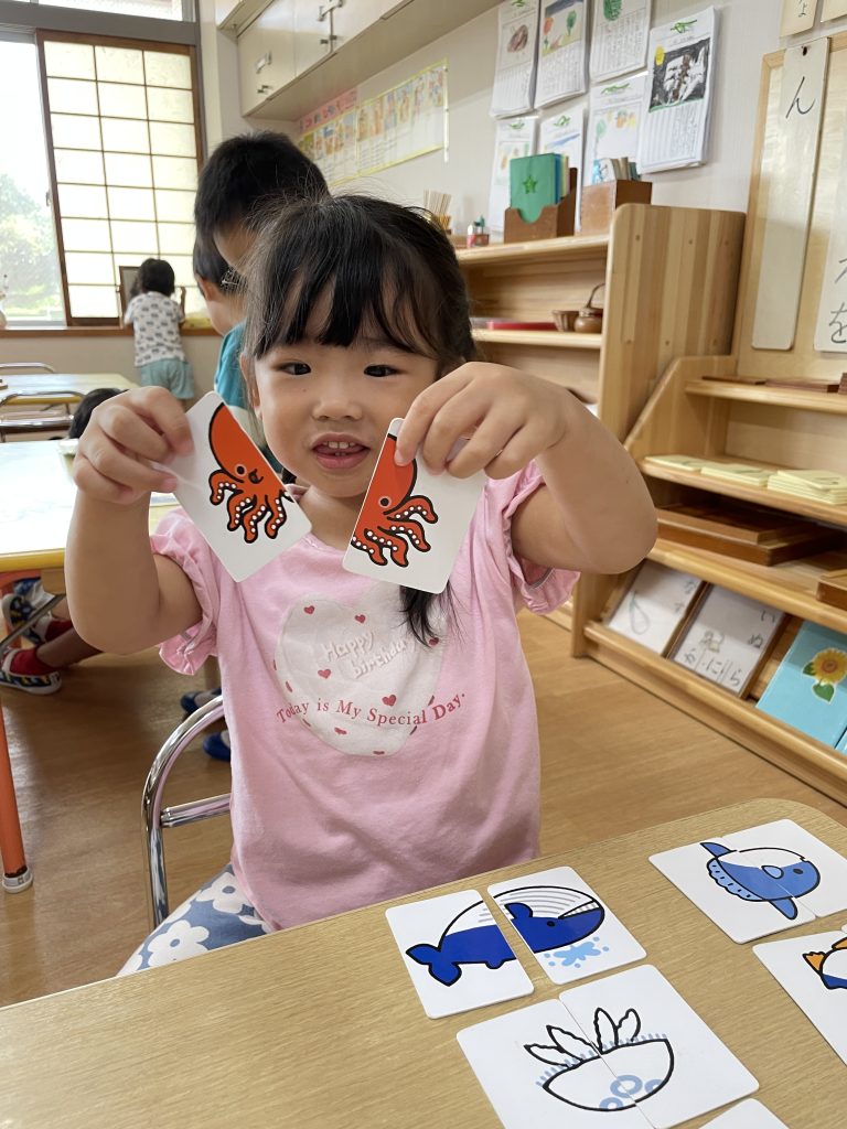 朝のモンテッソーリ活動の時間に好きなお仕事を選んで行っています。