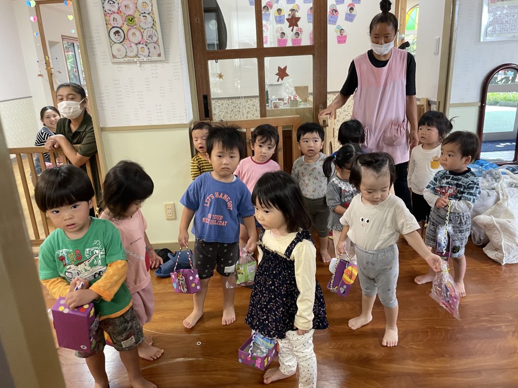 事務所まで手作りバックを持ってお菓子をもらいにいきました!
