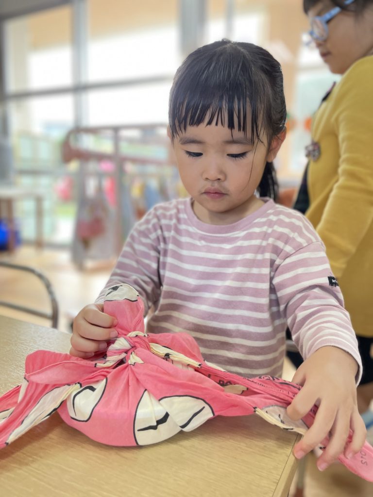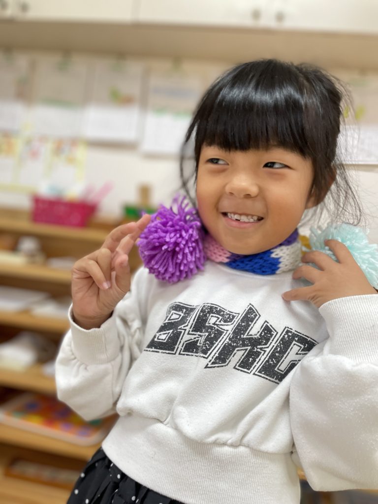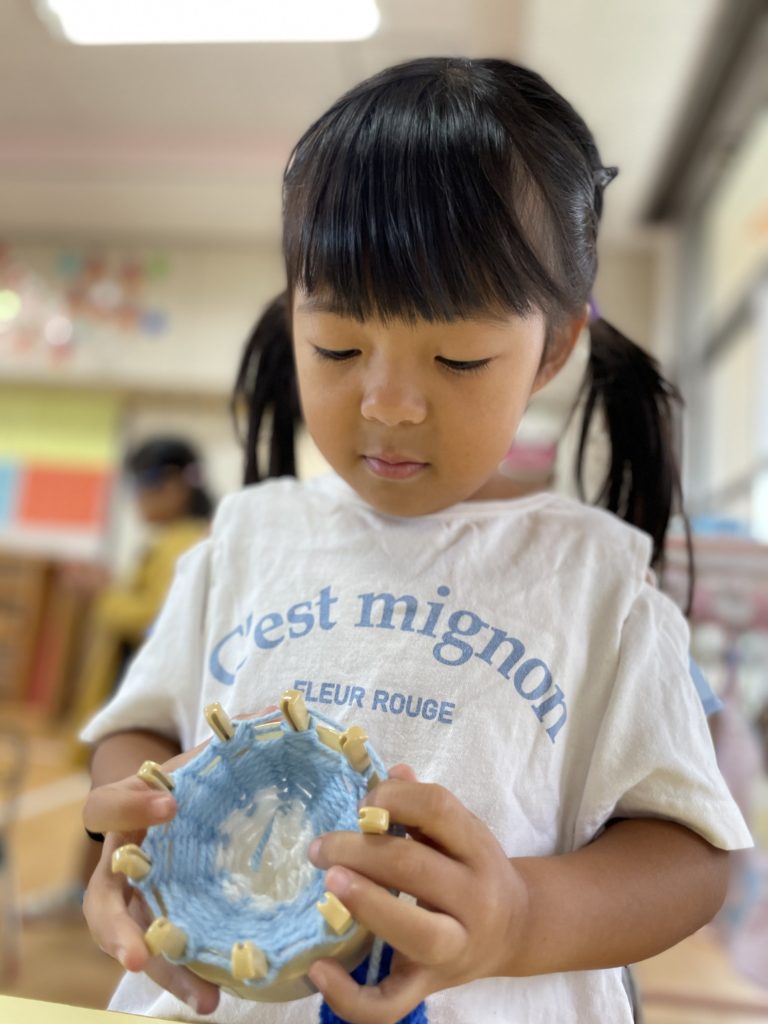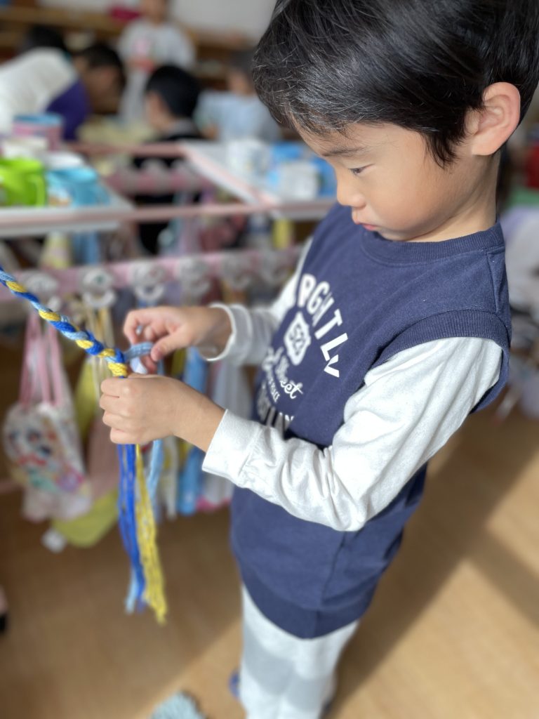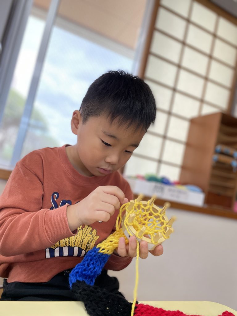 マフラーやバッグ作りは、時間がかかりますが年長さんはとても喜んで取り組んでいます!