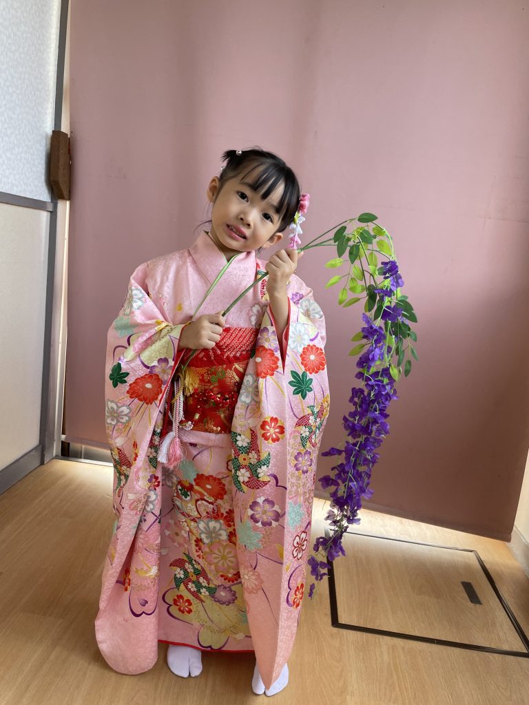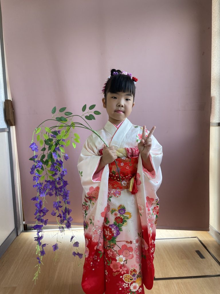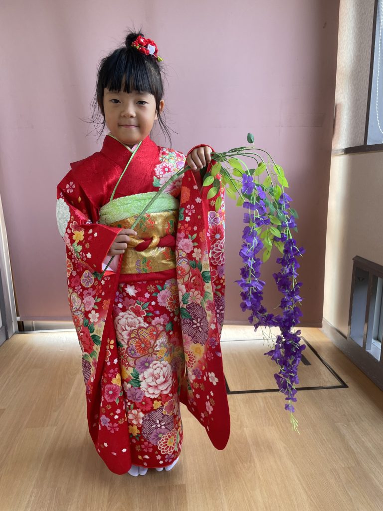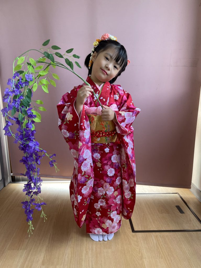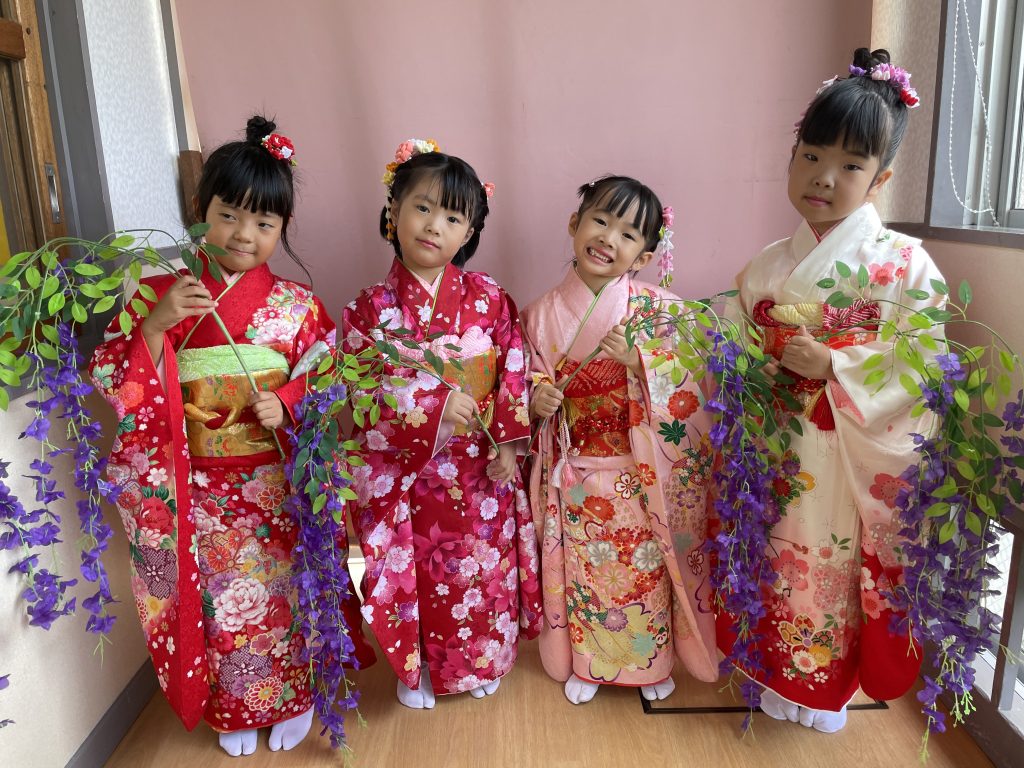 年長さんの女の子は,藤の花を持っておしとやかに踊ります!